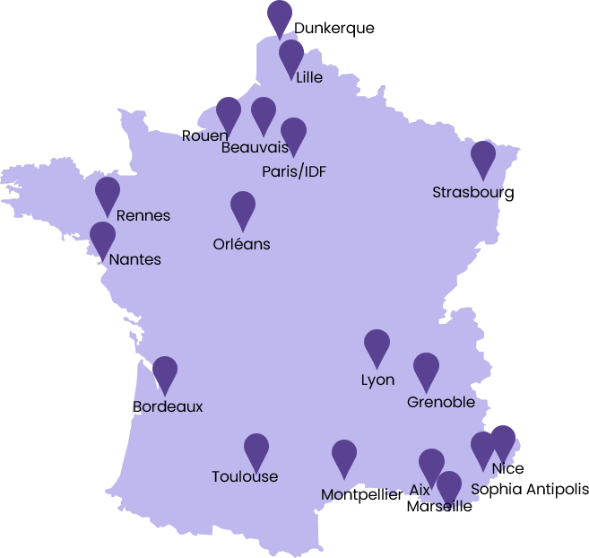 Depuis 2021, nous accompagnons nos clients dans toutes les grandes villes de France.